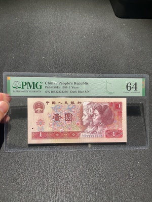 Q36217277 The Fourth Set 1980 Edition One Yuan Note HR22222298 Sky-reaching Subsidiary Number Elephant Head Number Two Dragon Pearl Number PMG Graded Premium Number Banknote