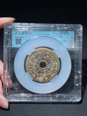 Q28217809 Qing Dynasty Twelve Zodiac Animals with Bagua Pattern on Reverse, Well-Circulated Yellowish Charm Coin