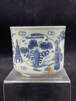 W30539852 Ceramic, Restored, Qing Dynasty Blue and White Brush Pot, Size as per actual item