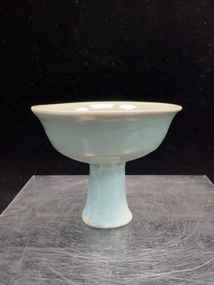 W38500661 Porcelain, intact, questionable shadow blue glaze carved stem cup