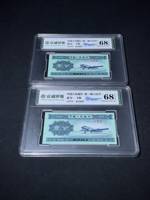 Q34988070 Two graded banknotes, Second Edition, 2 Fen with airplane design
