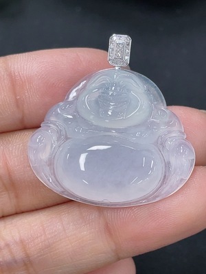 F37451948 Jadeite Buddha Pendant with 18K Gold and Diamond Accents, Total Weight Approx. 6.07g