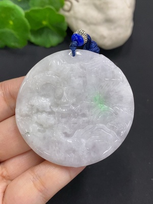 F36243498 Jadeite landscape pendant with total weight of about 36g (matching beads not grade A)