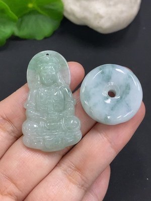 F34071536 Jadeite Pendant Guanyin Peace Button