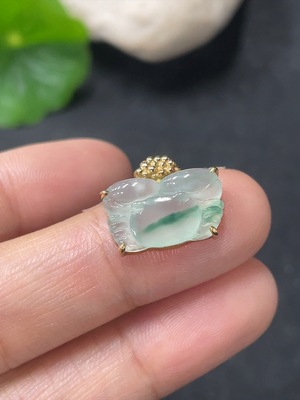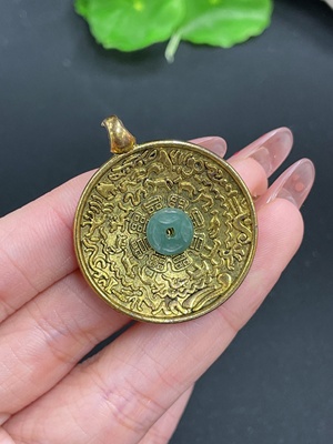 F20264199 Jadeite Blessing Shell Inlaid Pendant 18k Gold Inlaid Approximately 3.65g