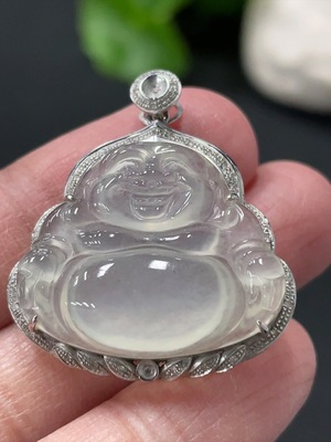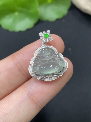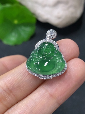 F29333688 Jadeite Buddha Pendant with 18K Gold Setting, Total Weight Approx. 2.7g (Accented with Diamonds)