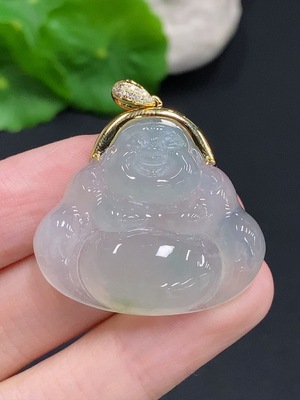 F28246780 Jadeite Buddha Pendant with 18K Gold Bail, Total Weight Approx. 2.25g