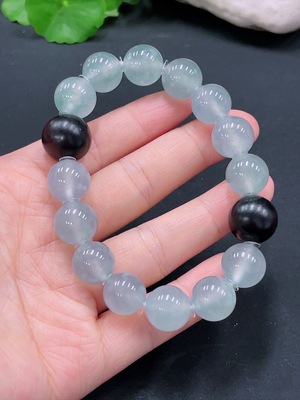 F24699353 JadeiteBracelet, Approx. 12.8mm Beads, Total Weight ~54.37g, Black Beads with Wood