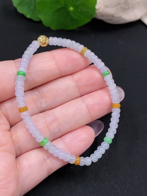 F34981302 Jadeite Beads Strand Approx. 4.3mm Total Weight Approx. 6.7g (Non-Gold Inlaid) (Yellow Part Color Origin Undetermined)