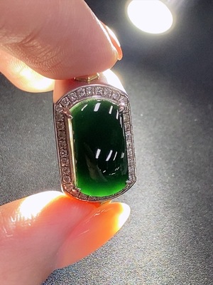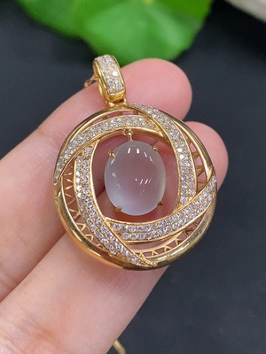 F35136500 Jadeite Plain Pendant inlayed with 18k gold and diamonds, total weight about 0.32g