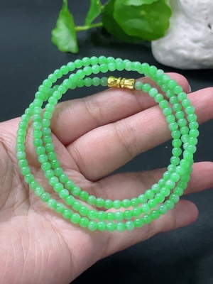 F33935275 Jadeite Bead Necklace Approx. 3.7mm Total Weight About 15g Non-Gold Clasp