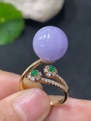 F35205117 Jadeite inlaid ring 18k with diamond size 13 total weight approximately 6.72g with non-A bead