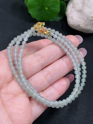 F30459443 Jadeite Bead Necklace approx. 4.2mm total weight approx. 11.5g (Color origin undetermined)