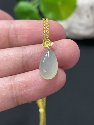 F34999296 Jadeite Waterdrop Pendant with 18K Gold Bail, Non-Gold Chain, Item Weight Excluding Chain Approx. 0.79g