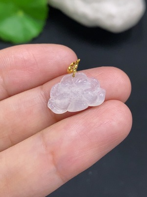 F30495011 Jadeite Lotus Pendant with 18K Gold Clasp, Total Weight Approximately 0.6g