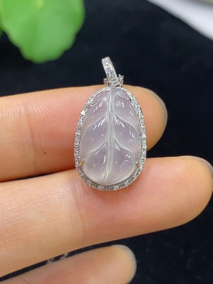 F36210370 Jadeite Leaf Inlaid Pendant with 18k Gold and Diamond Accents, Total Weight Approximately 2.1g