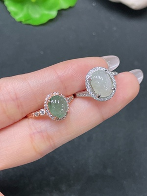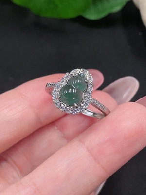 F36247909 Jadeite cabochon inlay ring, non-gold inlay, adjustable