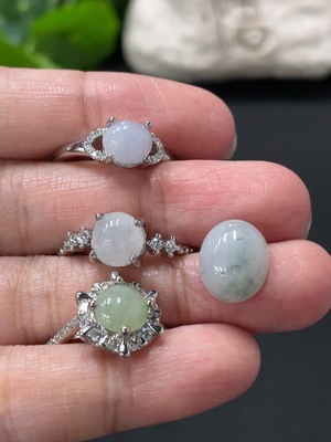 F36253503 Jadeite Inlaid Ring Cabochon Sell as a Lot Non-Gold