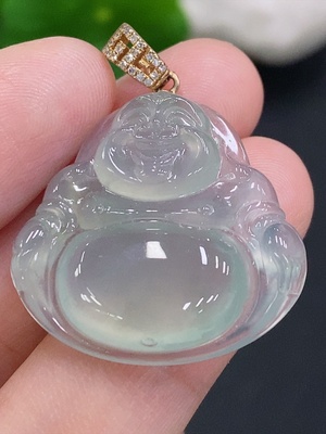 F33882957 Jadeite Buddha Pendant with 18K Gold Clasp, Total Weight Approximately 6.7g (Diamond Accents)