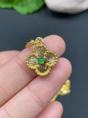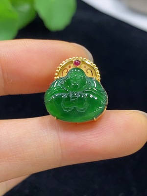 F35191997 Jadeite Buddha Pendant with 18K Gold Clasp, Total Weight Approximately 2.5g