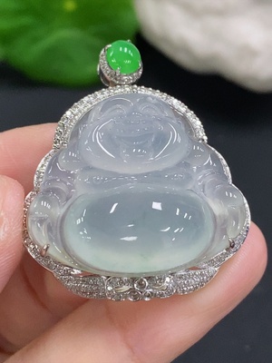 F33905389 Jadeite Buddha Pendant Set in 18K Gold with Diamonds, Total Weight Approx. 11.7g
