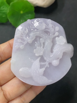 F35140099 Jadeite Pendant with Magpies on Plum Blossoms, Total Weight Approx. 64.84g