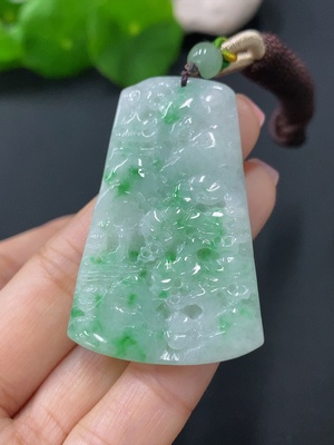 F26004341 Jadeitelandscape pendant with a total weight of approximately 16.6 grams (accompanying beads non-Grade A)