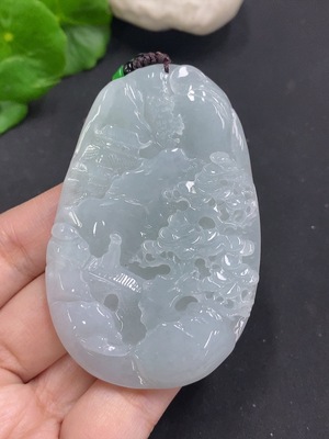 F37383539 Jadeite Landscape Pendant Total Weight Approx. 65.7g (including rope weight) Non-jadeite beads included
