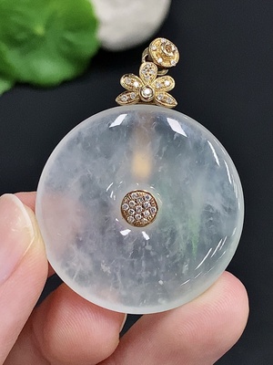 F29418859 Jadeite Peace Button with 18K Gold Clasp, Total Weight Approx. 15g, Set with Diamonds
