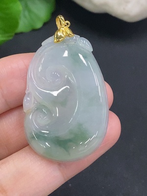 F36323716 Jadeite Ruyi Pendant with 18K Gold Clasp, Total Weight Approximately 8.1g