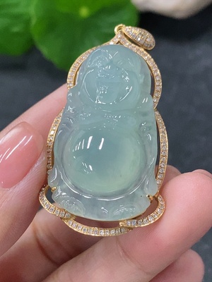 F34976934 Jadeite Inlaid Buddha Pendant No Stamp 18k Gold Surface Diamond Accents Total Weight Approx. 13.53g