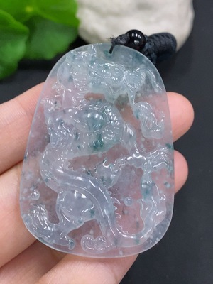 F33918718 Jadeite Pendant Dragon Plaque Landscape Plaque with Non-A Grade Beads