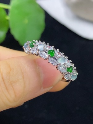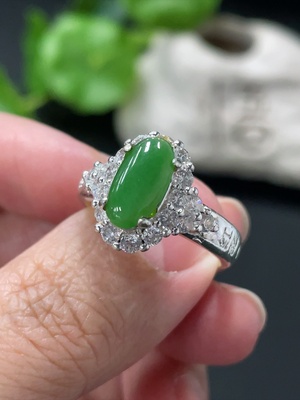 F37394801 Jadeite Cabochon Inlaid Ring Non-Gold Adjustable Total Weight Approx. 2.669g