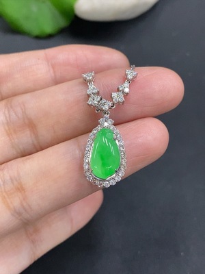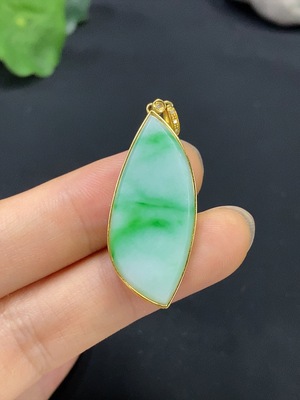 F34997236 Jadeite Plain Pendant with 18K Gold and Diamond Accents, Total Weight Approx. 9.3g