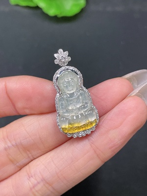 F36209307 Jadeite Pendant Guanyin 18K Gold Inlaid with Diamond Colorless Total Weight Approx. 3.4g