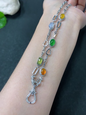 F35116723 Jadeite inlaid necklace with 18k gold and diamonds, total weight approximately 9.86g