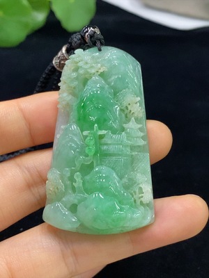 F33929811 Jadeite Landscape Pendant Total Weight Approximately 41.59g (Including Cord Weight)