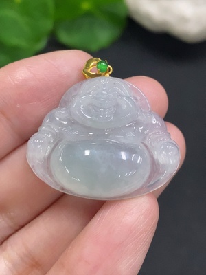 F36325115 Jadeite Buddha Pendant with 18K Gold Clasp, Total Weight Approximately 6.4g
