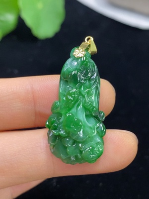 F35178295 Jadeite Pendant Cabbage with 18K Clasp Containing Other Mineral Components Total Weight Approx. 5g