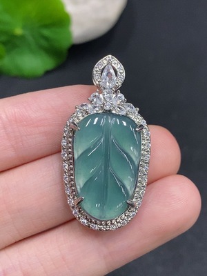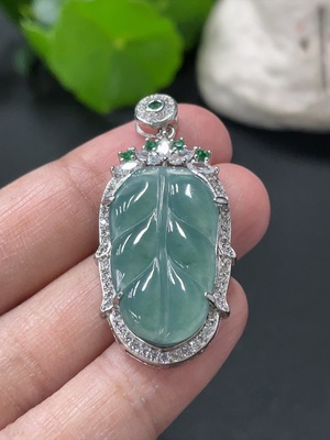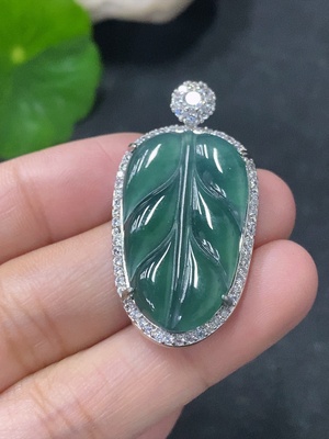 F34962176 Jadeite Leaf Inlaid Pendant Non-Gold Inlaid Total Weight About 4.48g