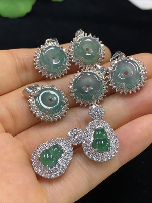 F33912507 Jadeite Inlaid Pendant Sell as a Lot Non-Gold