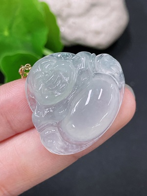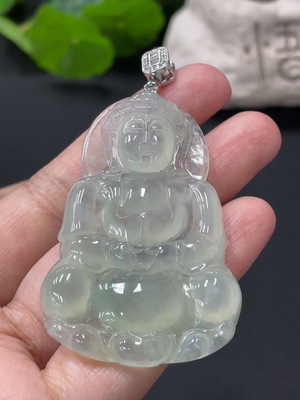 F33918841 Jadeite Buddha Pendant with 18K Gold Clasp, Total Weight Approx. 8.4g