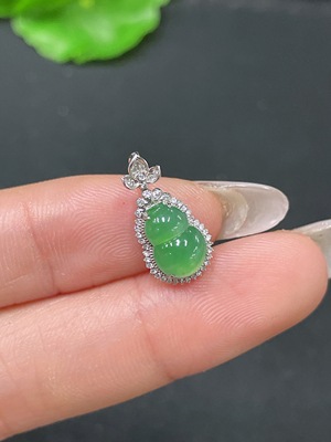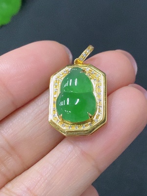 F36234253 Jadeite Gourd Inlaid Pendant with 18k Gold and Diamonds, Total Weight Approximately 0.91g