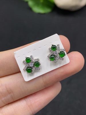 F16761421 Jadeite Inlaid Earrings, Non-Gold, Pair of 2
