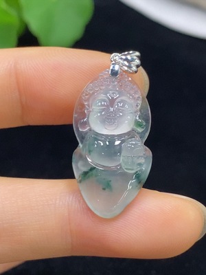 F33935688 Jadeite Buddha Pendant with 18K Gold Clasp, Total Weight Approx. 2.18g