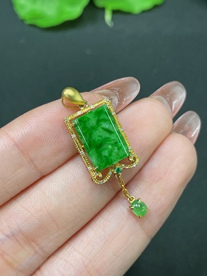 F36340547 Jadeite Pendant 74% Gold Content with Diamond Accents Total Weight Approx. 2.06g
