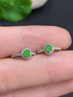 F36314606 Jadeite earrings with 18K gold, total weight approx. 1.4g (set with diamonds)