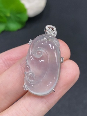 F36246045 Jadeite Ruyi Inlaid Pendant 18k Gold Inlaid with Diamonds Total Weight Approximately 6.17g