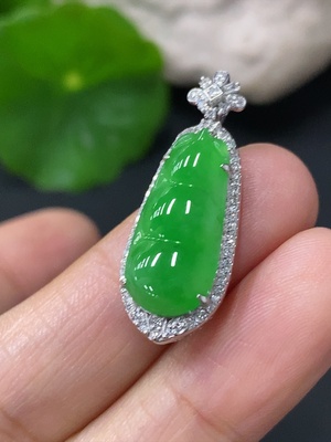 F36212377 Jadeite Bean Pendant Set in 18K Gold with Diamond Accents, Total Weight Approx. 2.14g
