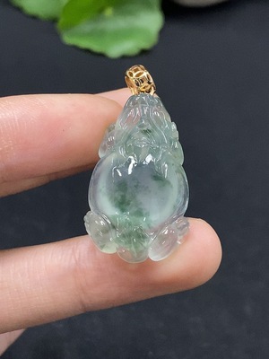 F32701235 Jadeite Buddha Pendant with 18K Gold Clasp, Total Weight Approximately 1.9g